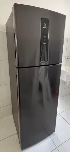 Utilizei por um bom tempo essa geladeira IF43B da Electrolux durante um almoço de família na casa de um cliente, com bastante preparo antecipado e abertura constante de portas. Logo nos primeiros momentos, o que me chamou atenção foi o conjunto visual. O acabamento Black Inox Look é mais fechado, menos espelhado, e não marca tanto os dedos quanto outros inox escuros que já vi. A porta tem uma rigidez boa, passa sensação de estrutura firme, e o puxador embutido facilita a limpeza, algo que sempre observo quando trabalho em cozinhas movimentadas.