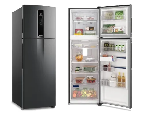 A melhor geladeira frost free é a Electrolux IF43B. Isso porque ela é a que melhor equilibra tecnologia, espaço e acabamento. Não é um modelo básico, mas também não entra no território dos mais caros, e isso aparece nas escolhas de projeto. O sistema AutoSense ajuda a manter a temperatura mais estável mesmo com uso intenso, a organização interna é bem pensada e o acabamento Black Inox Look traz uma sensação mais moderna sem exageros. Para a maioria das pessoas, é uma geladeira que atende bem a rotina, comporta diferentes tipos de preparo e oferece recursos úteis sem complicar o uso nem inflar demais o investimento.