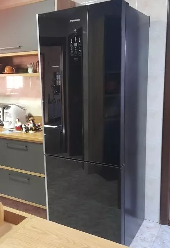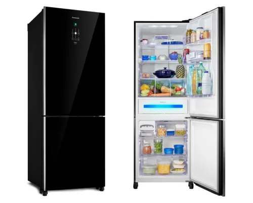 Testei essa geladeira NR-BB71GVFB da Panasonic durante um jantar mais elaborado na casa de um cliente, com preparo longo e ingredientes que precisavam ser usados em etapas diferentes. O acabamento Black Glass com vidro espesso e estrutura rígida já mostra que é um produto pensado em outro nível. A porta tem peso bem distribuído e fecha com precisão, sem precisar de tranco.