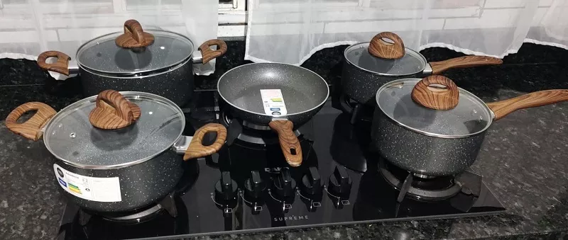 - Conjunto completo para o dia a dia, com panelas, caçarolas, frigideira e leiteira